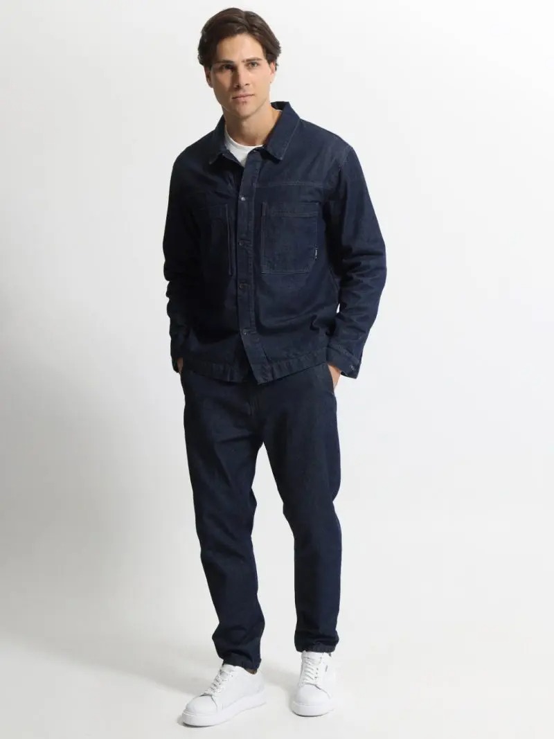 Ανδρικό τζιν παντελόνι σε κλασική, σκούρα μπλε απόχρωση, ιδανικό για καθημερινή αλλά και πιο προσεγμένη casual εμφάνιση. Κατασκευασμένο από μαλακό και ελαστικό denim ύφασμα, προσφέρει άνεση και ελευθερία κινήσεων. Διαθέτει λάστιχο στη μέση για εύκολη εφαρμογή και καλύτερη προσαρμογή στο σώμα, σε συνδυασμό με κλείσιμο με κουμπί και φερμουάρ για κλασική αισθητική.