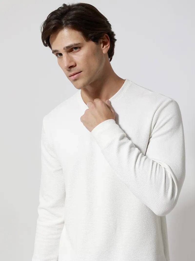 Ανανεώστε το στυλ σας με αυτή την κομψή ανδρική μπλούζα μακρυμάνικη, η οποία ξεχωρίζει χάρη στην ιδιαίτερη υφή του υφάσματος. Διαθέτει στρογγυλή λαιμόκοψη και minimal σχεδιασμό που την καθιστά ιδανική επιλογή για καθημερινές αλλά και πιο προσεγμένες εμφανίσεις. Το ελαφρύ και άνετο ύφασμα εξασφαλίζει άνεση όλη την ημέρα.