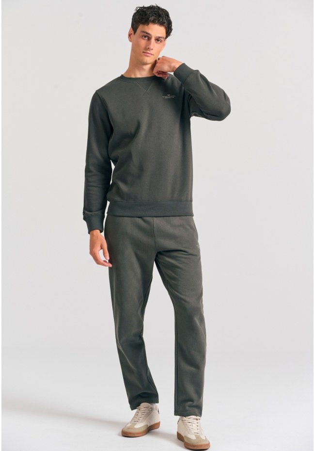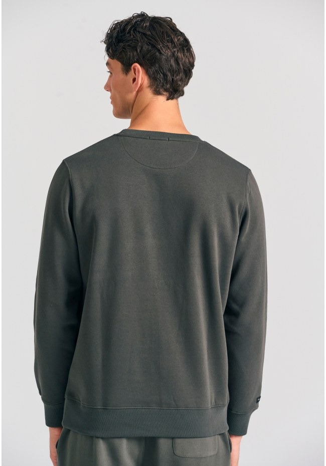 Ανδρικό φούτερ athleisure με στρογγυλή πλάτη και κάλυψη στο πίσω μέρος, σε κανονική εφαρμογή για άνεση όλη μέρα. Διαθέτει λαιμόκοψη και μανσέτες με ριμπ, ενώ οι σκούροι μονοχρωματικοί τόνοι με διακριτικό λογότυπο στο στήθος προσδίδουν μινιμαλιστική κομψότητα. Φτιαγμένο από μείγμα βαμβακιού υψηλής ποιότητας, είναι ιδανικό για όλες τις εποχές. Συνδυάστε το με τζιν ή athleisure παντελόνια για μια χαλαρή αλλά στιλάτη εμφάνιση, από τη δουλειά, το γυμναστήριο μέχρι τον καφέ με φίλους.