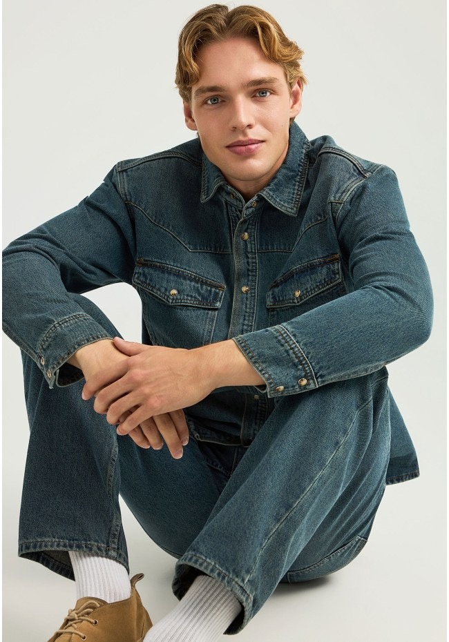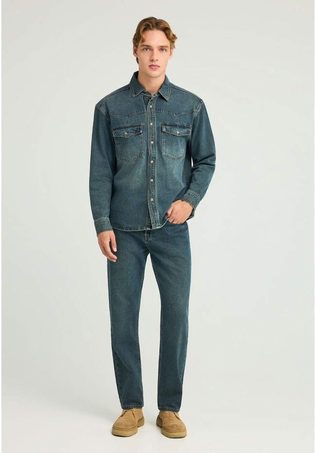 Ανδρικό πουκάμισο denim κατασκευασμένο από ανθεκτικό ύφασμα denim/chambray με whisker wash εφέ. Με κανονικό κόψιμο, καλυμμένη πλάτη και κλασικό γιακά, αποτελεί ιδανική επιλογή για χαλαρές φθινοπωρινές και χειμερινές ημέρες. Διαθέτει ευθεία κάτω κοπή και τσέπες στο στήθος για πρακτικότητα και στυλ. Συνδύασέ το με σκούρα ή ανοιχτόχρωμα παντελόνια και casual παπούτσια για ένα effortless, laid-back look κατάλληλο για ποικιλία περιστάσεων.