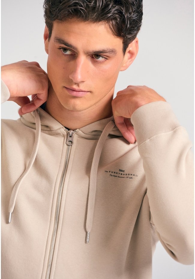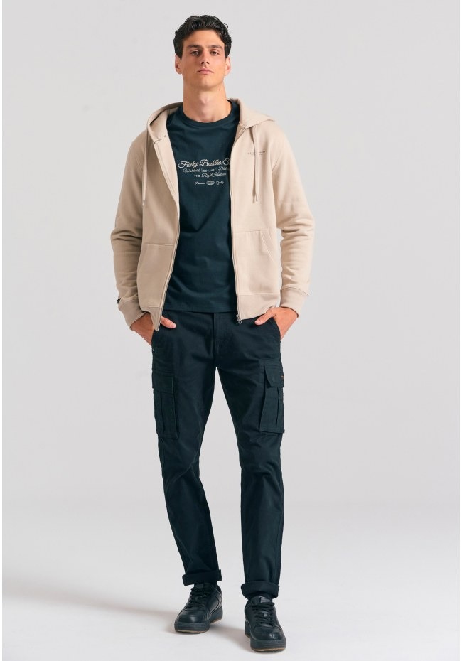 Ανδρική ζακέτα φούτερ σε κανονική γραμμή, σε single-color αποχρώσεις, ιδανική για τη φθινοπωρινή και χειμερινή περίοδο. Διαθέτει κουκούλα με κορδόνι, μακριά μανίκια και ίσιο στρίφωμα, ενώ το φερμουάρ και η μπροστινή τσέπη εξασφαλίζουν πρακτικότητα. Το τυπωμένο λογότυπο και το μεταλλικό έμβλημα προσθέτουν μια διακριτική premium πινελιά. Κατασκευασμένη από φυσικές ίνες σε βαμβακερό μείγμα, η ζακέτα συνδυάζεται εύκολα με τζιν και sneakers για ένα χαλαρό αλλά στιλάτο outfit – ιδανικό για καθημερινές εμφανίσεις ή αστικές εξορμήσεις.
