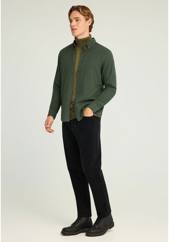 Ανδρικό oxford πουκάμισο με button-down κολάρο, κατασκευασμένο από 100% βαμβάκι για φυσική αίσθηση και άνεση. Σε καθαρούς μονόχρωμους τόνους, με κανονική γραμμή, μακριά μανίκια και ίσιο τελείωμα, αποτελεί βασικό κομμάτι για κάθε smart casual εμφάνιση. Το απλό design με κλασικές μανσέτες το κάνει ιδανικό για καθημερινές αλλά και πιο προσεγμένες περιστάσεις. Φοριέται μέχρι το ύψος του γοφού, προσφέροντας άψογη εφαρμογή. Συνδυάστε το με chino ή σκούρο τζιν και loafers για μια διαχρονικά κομψή εικόνα.