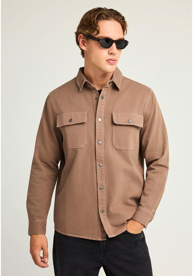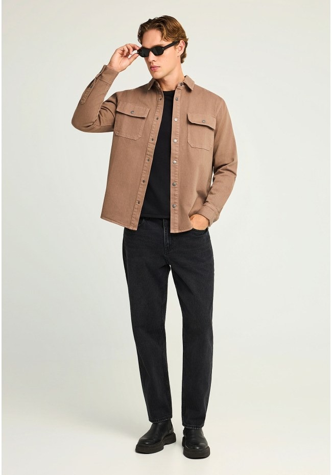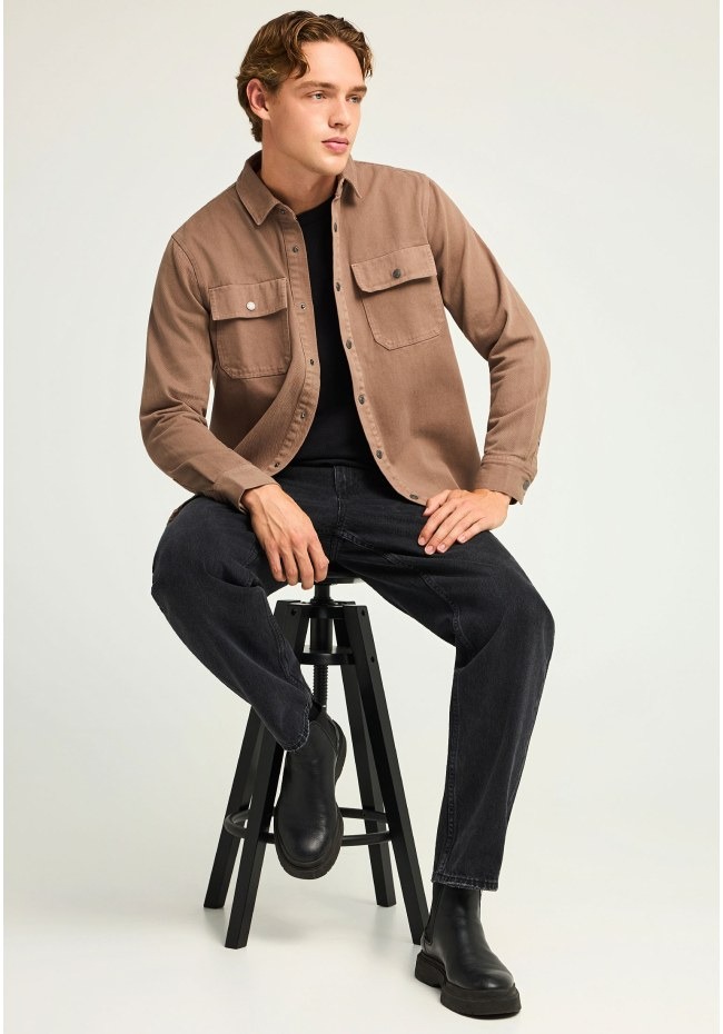 Πολυχρηστικό ανδρικό τζιν πουκάμισο σε σκούρες αποχρώσεις, σχεδιασμένο σε κανονική γραμμή με ίσια κοπή και μήκος μέχρι τους γοφούς. Κατασκευασμένο από denim με ματ υφή, διαθέτει κλασικό γιακά, μακριά μανίκια με δίχρωμες μανσέτες δύο κουμπιών και τσέπες με καπάκι. Το κουμπωτό κλείσιμο και η διακριτική σχεδίαση το καθιστούν ιδανικό για καθημερινές αλλά και smart εμφανίσεις. Ένα denim essential που συνδυάζεται τέλεια με ανοιχτόχρωμο τζιν ή casual παντελόνι για κομψό και διαχρονικό look.