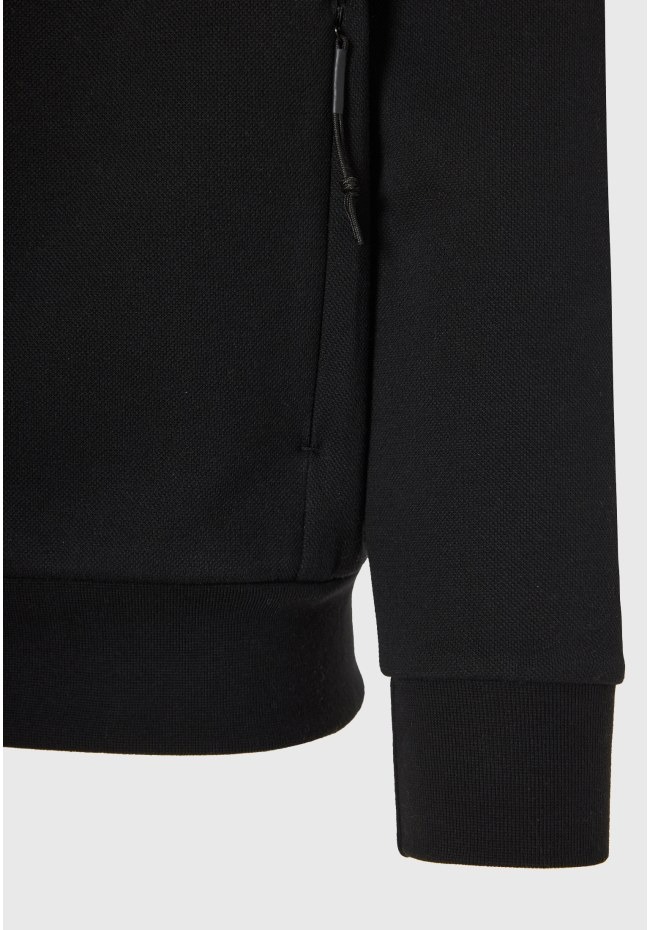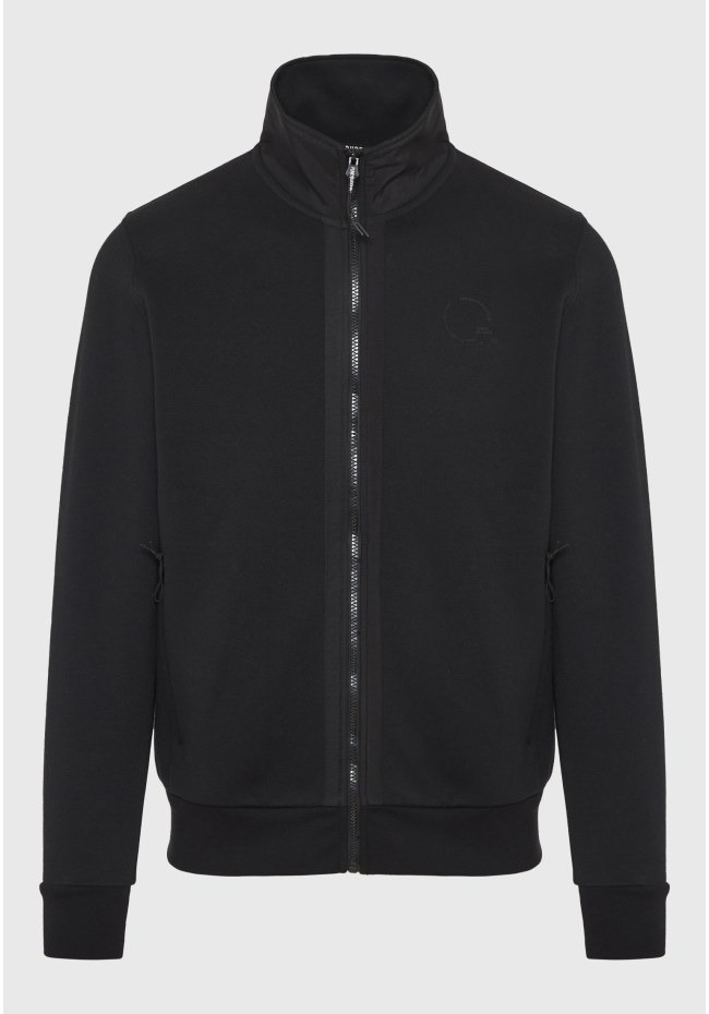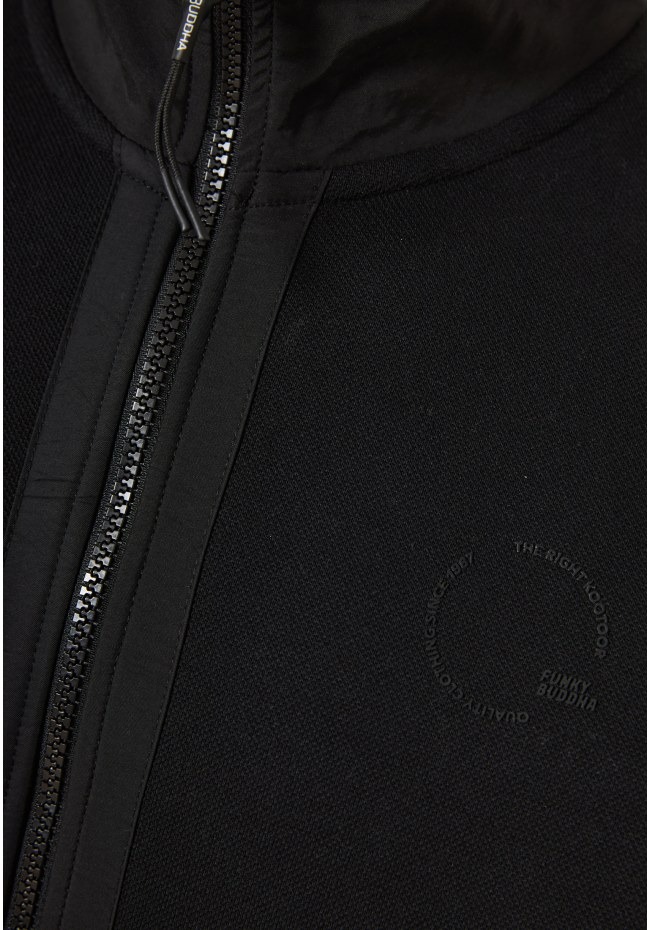 Μαύρη ανδρική ζακέτα με κανονική εφαρμογή και καλυμμένο πίσω μέρος, ιδανική για φθινόπωρο και χειμώνα. Διαθέτει μονοχρωματικό σκούρο τόνο και funnel neck, κατασκευασμένη από φυσικές ίνες και βαμβακερό μείγμα με twill ύφανση. Με μήκος μέχρι τους γοφούς, μακριά μανίκια με ελαστικές μανσέτες και ίσια γραμμή, κλείνει με φερμουάρ για εύκολη εφαρμογή. Συνδυάστε τη με casual παντελόνια ή joggers και sneakers για μια χαλαρή, σύγχρονη εμφάνιση.