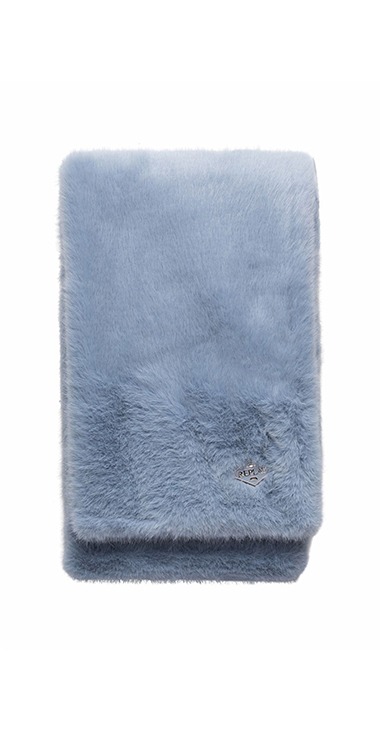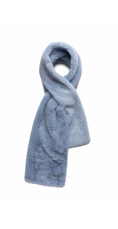 Soft and fluffy faux fur scarf. This accessory is decorated with our iconic tonal diamond logo on the bottom. Length 130 cm x Width20 cm. 100% POLYESTER F/W 2025