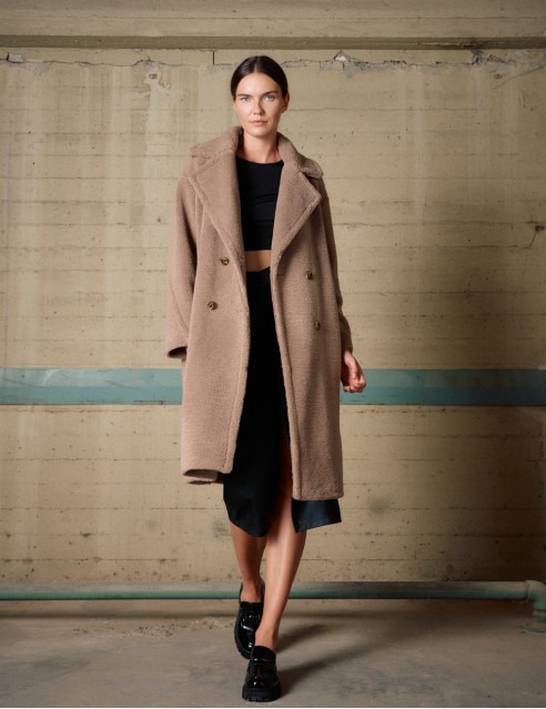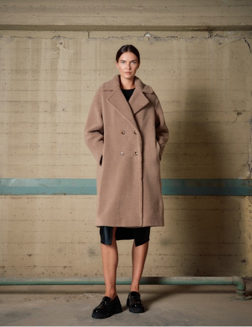 Biston μακρύ παλτό από προβατάκι με γιακά