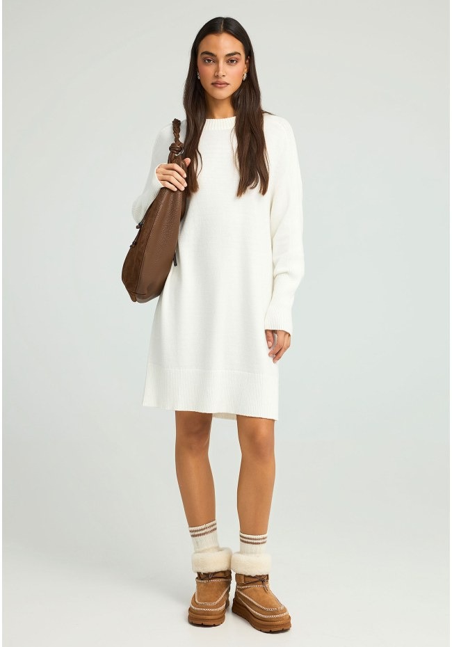 Αναδείξτε τη φυσική σας κομψότητα με αυτό το γυναικείο πλεκτό φόρεμα σε μονόχρωμη απόχρωση. Με λαιμόκοψη crew και ριμπ μανσέτες, συνδυάζει άνεση και στυλ, ιδανικό για τις φθινοπωρινές και χειμερινές μέρες. Κατασκευασμένο από απαλό πλεκτό ύφασμα με μείγμα μαλλιού, αγκαλιάζει το σώμα με διακριτική γραμμή και cozy υφή. Φορέστε το με sneakers για ένα χαλαρό look ή με μπότες για μια πιο θηλυκή, ανεπιτήδευτη εμφάνιση.