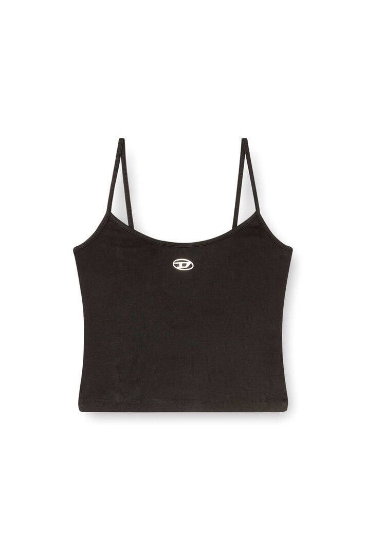 Slim fit top with thin straps and a round neckline. Made from finely-ribbed stretch cotton, it ensures comfort and freedom of movement. A distinctive feature is the injection-printed metallic Oval D logo embossed below the neckline.
