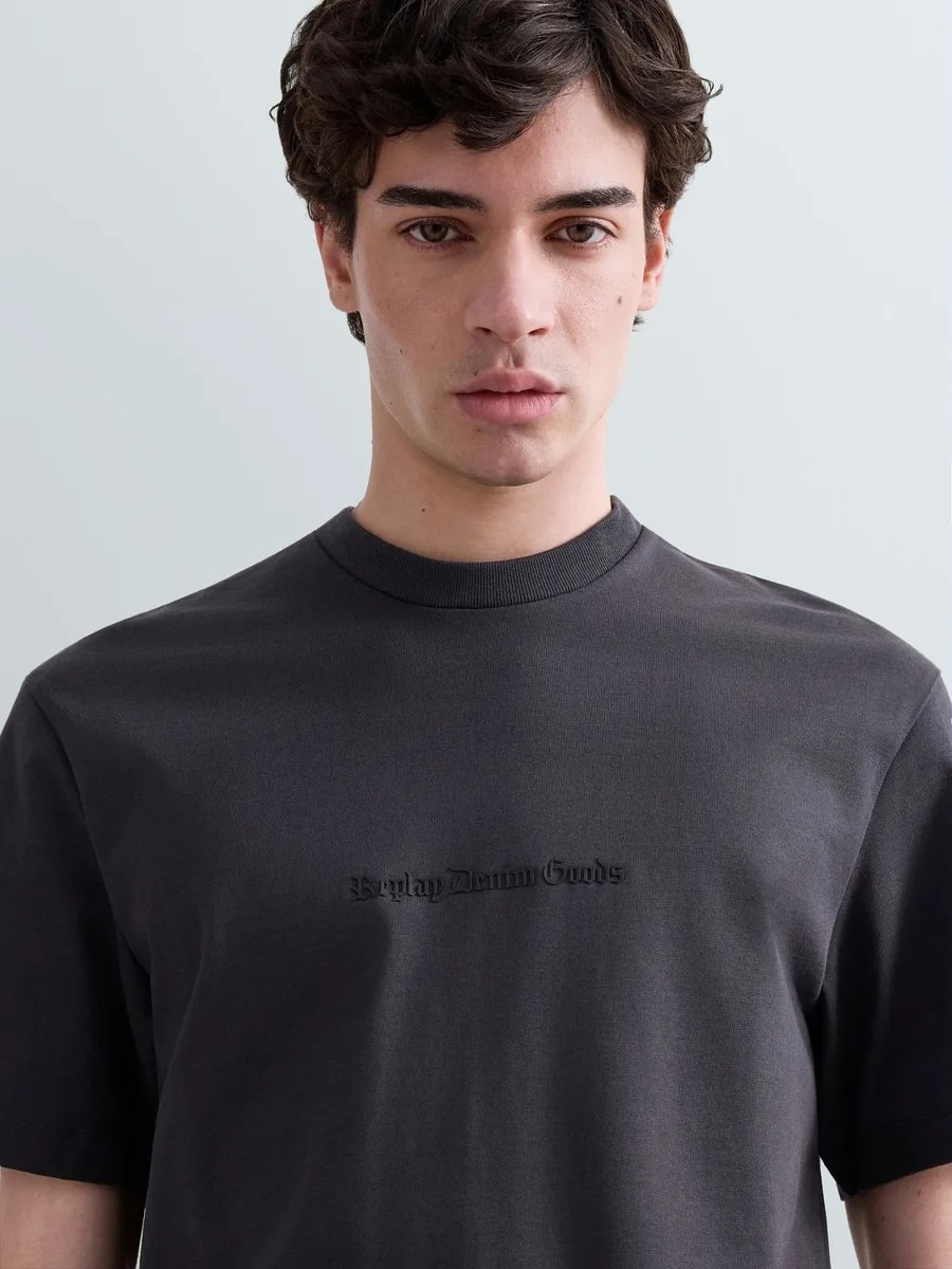 Relaxed-fit crew-neck T-shirt in heavy pure cotton jersey, guaranteeing softness and durability. This short-sleeved style features a tonal Gothic-inspired logo embroidered on the chest. Our iconic Replay flag label adds the finishing touch to the style on the side.