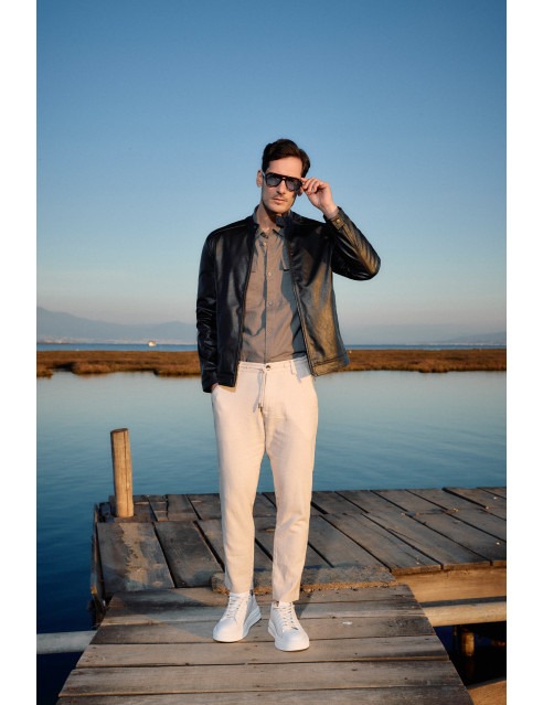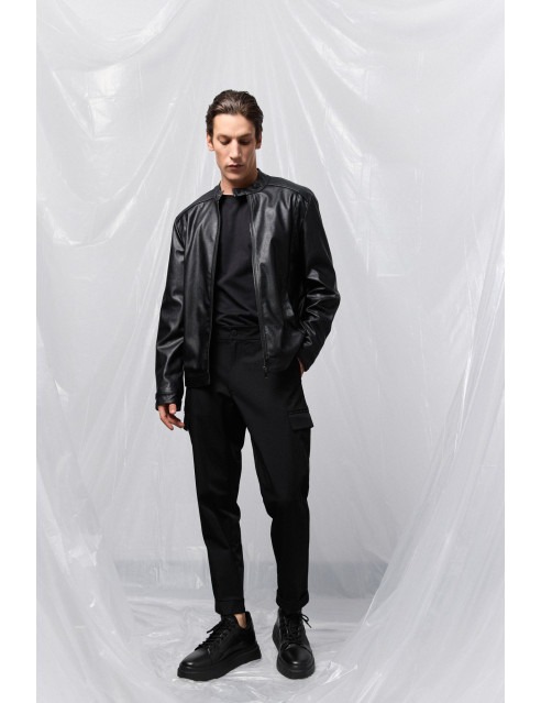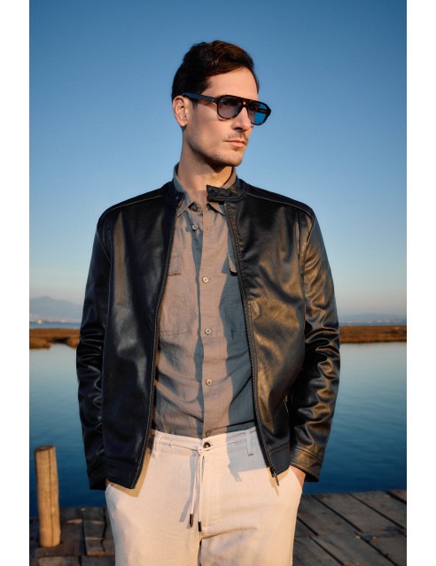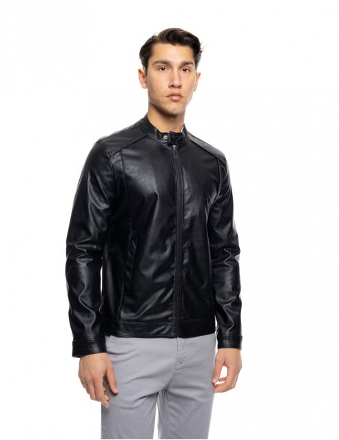 BISTON JACKET ΤΕΧΝΟΔΕΡΜΑ ΑΝΤΡΙΚΟ ΜΑΥΡΟ 53-201-047 REGULAR FIT