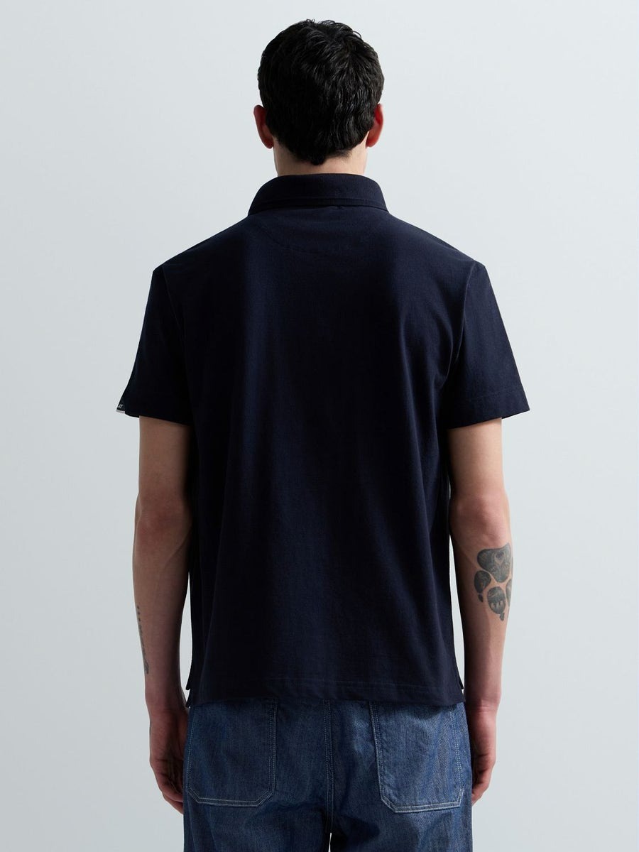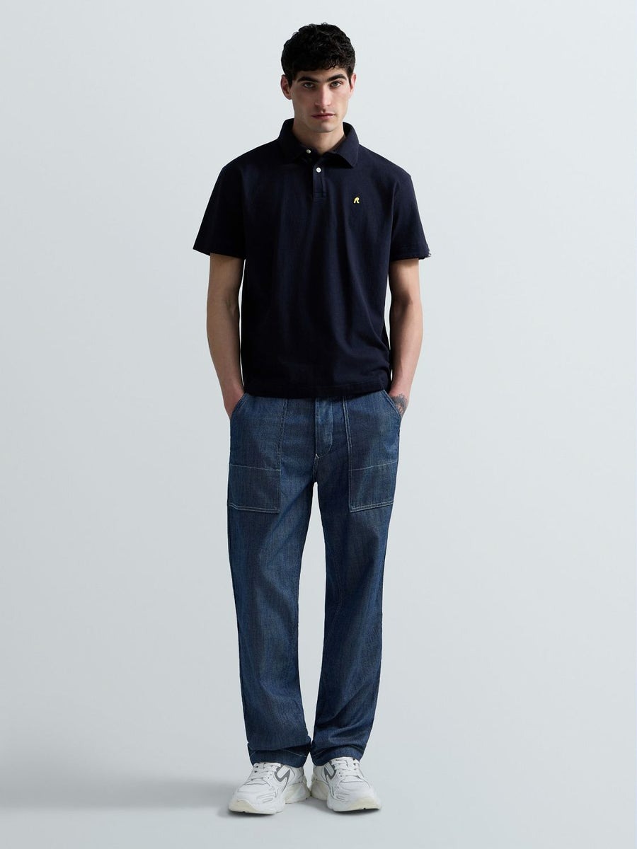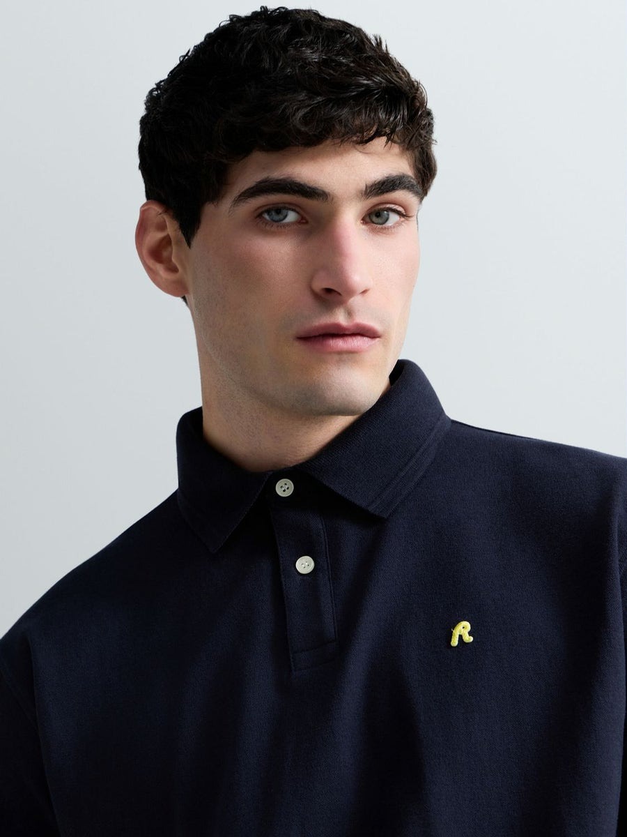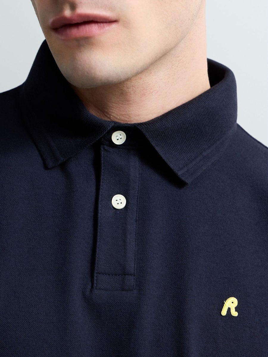 Regular-fit short-sleeved polo-shirt in stretch cotton piqué featuring a classic collar with a two-button placket. This design is embellished with the iconic contrasting R embroidery on the chest and the logo insert on the sleeve.