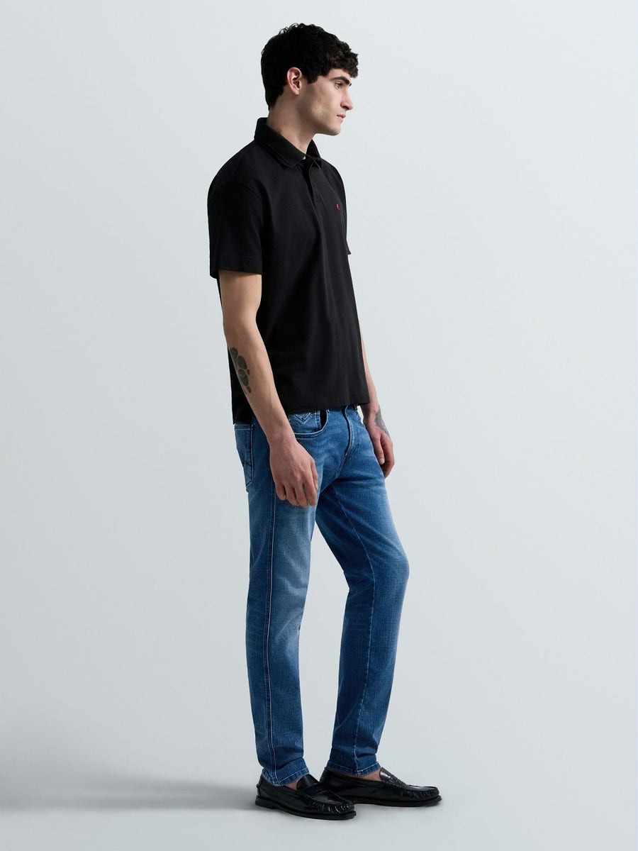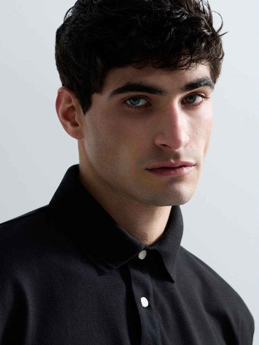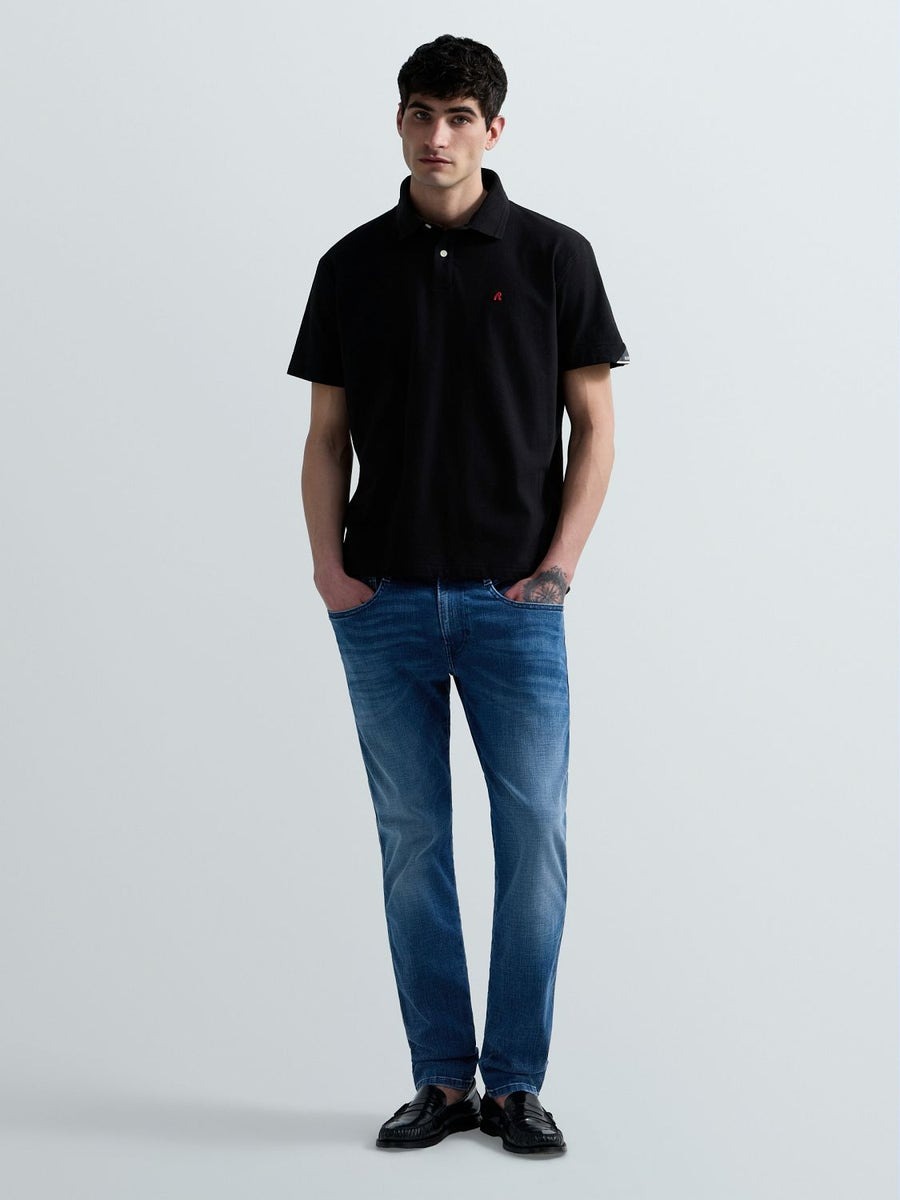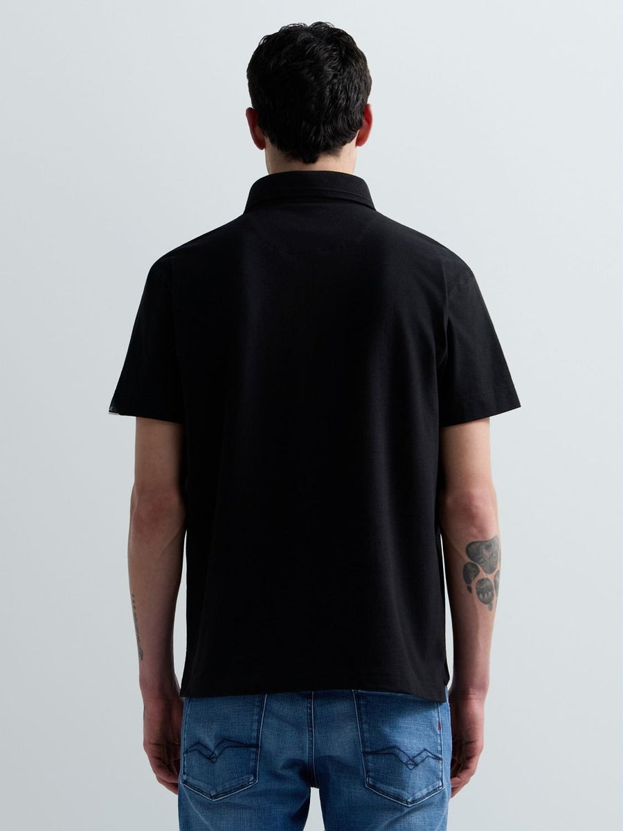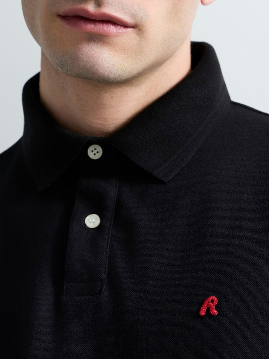 Regular-fit short-sleeved polo-shirt in stretch cotton piqué featuring a classic collar with a two-button placket. This design is embellished with the iconic contrasting R embroidery on the chest and the logo insert on the sleeve.