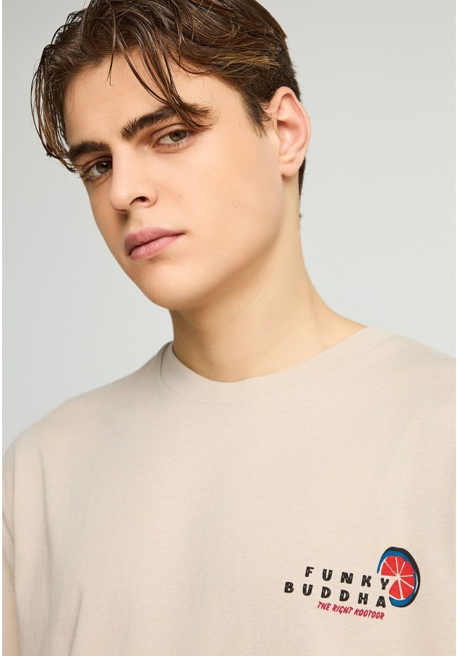 FUNKY BUDDHA T-SHIRT ΑΝΔΡΙΚΟ ΜΠΕΖ-FOG FBM013-087-04 RELAXED FIT