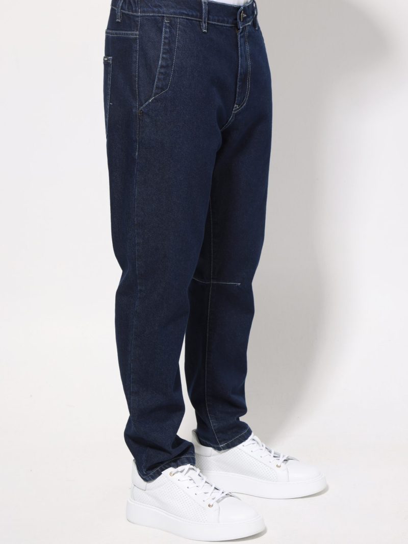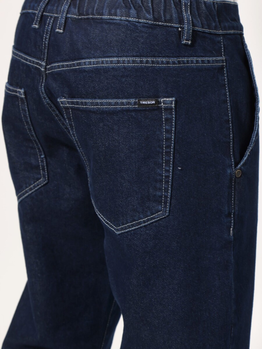 Ανδρικό τζιν παντελόνι σε κλασική, σκούρα μπλε απόχρωση, ιδανικό για καθημερινή αλλά και πιο προσεγμένη casual εμφάνιση. Κατασκευασμένο από μαλακό και ελαστικό denim ύφασμα, προσφέρει άνεση και ελευθερία κινήσεων. Διαθέτει λάστιχο στη μέση για εύκολη εφαρμογή και καλύτερη προσαρμογή στο σώμα, σε συνδυασμό με κλείσιμο με κουμπί και φερμουάρ για κλασική αισθητική.