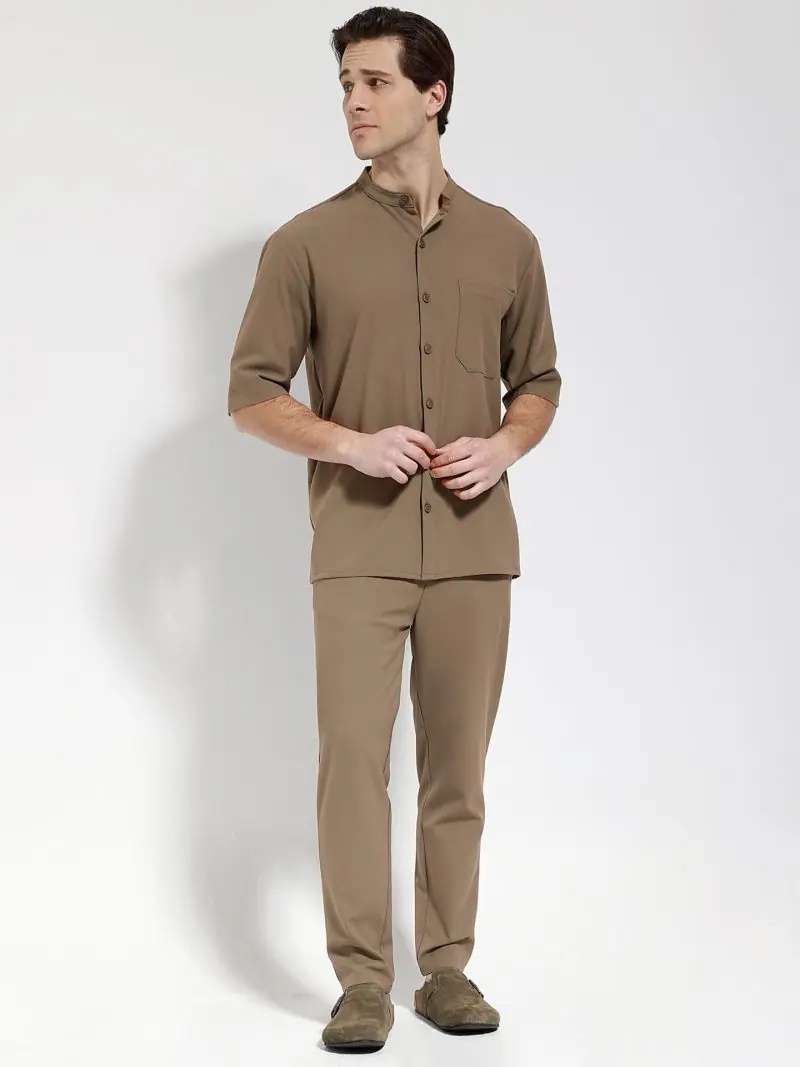 Κατασκευασμένο από ποιοτικό ύφασμα με απαλή υφή, αγκαλιάζει το σώμα χωρίς να περιορίζει, προσφέροντας δροσερή αίσθηση καθ’ όλη τη διάρκεια της ημέρας. Ο γιακάς τύπου mandarin προσδίδει διακριτική κομψότητα, ενώ η κουμπωτή μπροστινή όψη και η πρακτική τσέπη στο στήθος ενισχύουν τη λειτουργικότητα και το στυλ.