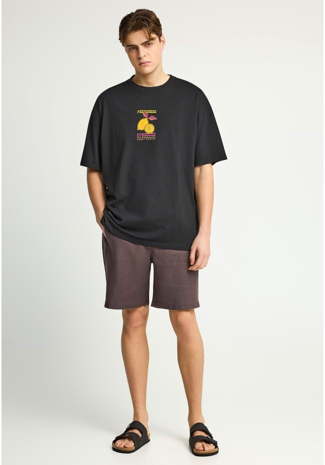 Ανδρικό oversized t-shirt με τύπωμα στο πίσω μέρος, φτιαγμένο από 100% βαμβάκι για απόλυτη άνεση και δροσερή αίσθηση. Αυτό το μπλουζάκι από την Funky Buddha αποτελεί statement κομμάτι για κάθε casual εμφάνιση. Συνδύασέ το με τζιν ή cargo παντελόνι για ένα cool και άνετο look.